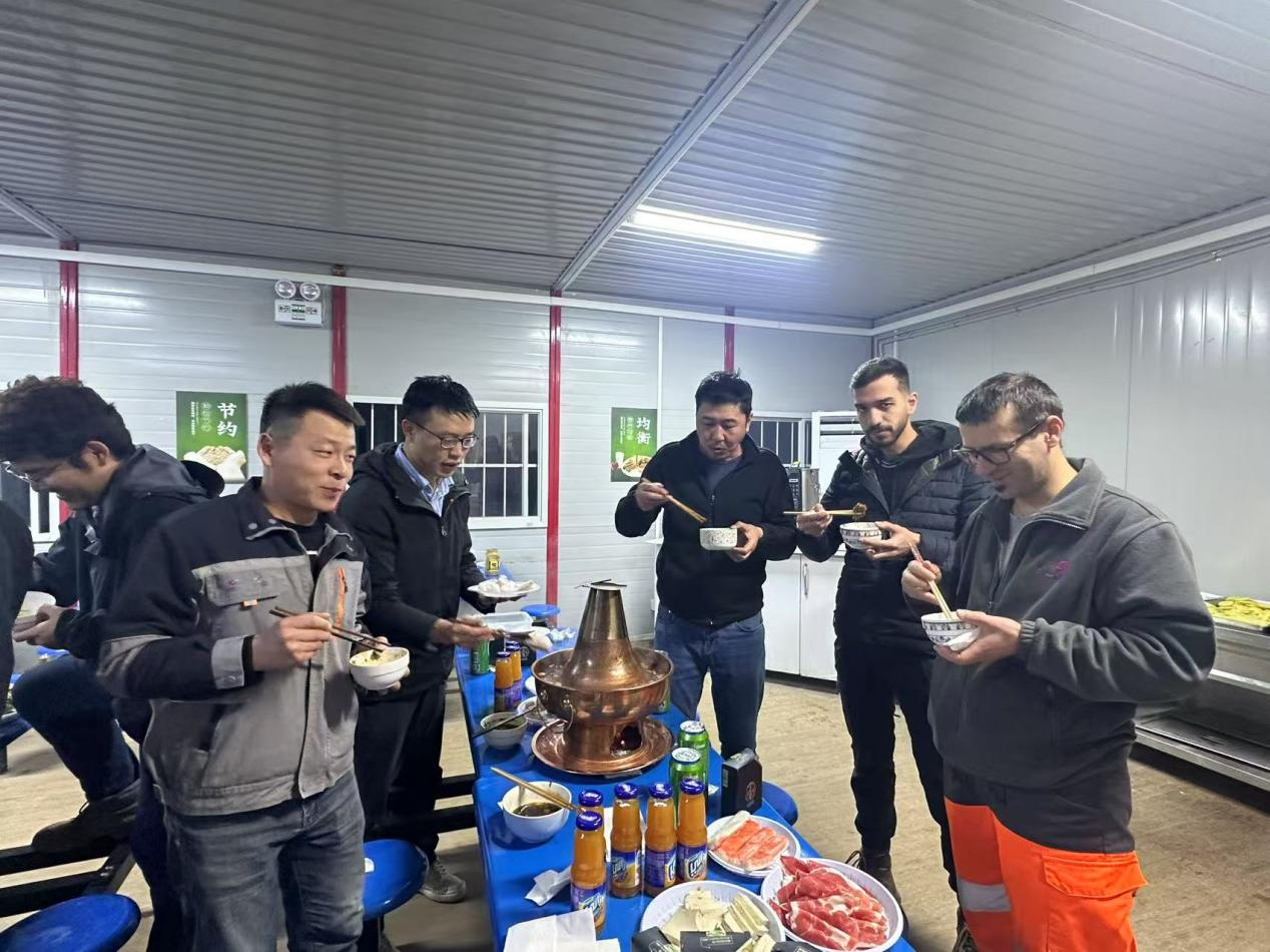 在這個萬家燈火、闔家團圓的新春之際,水電四局海外員工以豐富多彩的方式,與屬地員工共同歡度春節(jié),讓濃濃的年味在異國他鄉(xiāng)更加濃郁,推動了當?shù)貑T工對中國傳統(tǒng)習(xí)俗的了解,促進了中屬員工文化與心靈的交流。 品美食:感受新春味蕾 項目上忙碌了一天,到了除夕夜,中屬員工通過共享中國特色美食,一起歡度春節(jié)。 伊拉克示范學(xué)校項目部、安哥拉分公司、泰國華富里鐵路項目部聯(lián)動項目屬地員工,一同包餃子、準備年夜飯、看春晚。伴著春節(jié)喜慶的音樂,項目部中屬員工一起搟面皮、拌餃子餡,邊包餃子邊講中國春節(jié)習(xí)俗。伊拉克示范學(xué)校項目還特意準備了彩色的餃子,寓意新一年的生活多姿多彩。項目上還齊聚了中國各地“大廚”,在熱鬧的氛圍下,他們紛紛亮出自己的“拿手菜”,川菜、魯菜、湘菜,令人眼花繚亂、垂涎欲滴。在歡樂有趣的氛圍下,不同“樣式”的餃子包好了,不同菜系的年夜飯也準備好了,大家共享美食、齊看春晚,堅守一線的海外員工感受了異國他鄉(xiāng)不一樣的溫暖。 “三、二、一,過年啦!”零點的鐘聲準時響起,大家舉杯慶祝,歡聲笑語中,窗外煙花格外絢爛。 貼年紅:感受春節(jié)習(xí)俗 春節(jié)期間,海外項目被頗有中國特色的中國“?!鳖l頻照亮,員工們以寫福字、貼春聯(lián)、掛燈籠寄托家國情懷,這一抹屬于中國獨有的紅,寄托著他們對祖國和遠方親人的思念。 玻利維亞伊比利蘇水電站項目人員邀請屬地員工共同寫春聯(lián),同時還給他們講述中國如何過春節(jié)、如何寫春聯(lián),屬地員工津津有味地聽著中國春節(jié)習(xí)俗的講述,對中國文化充滿了好奇和欣賞。 “左邊一點,右邊一點,再往上一點??梢粤?,可以了?!贝蠹夷弥鴦倢懲甑拇郝?lián),一同貼春聯(lián)、掛燈籠,每個人臉上都露出了難以掩飾的喜悅,連屬地員工都贊嘆到“中國的春節(jié)就是不一般吶,感覺每個人都非常重視這個節(jié)日,還很隆重。” 裝點結(jié)束后,項目部組織拍攝“全家?!保蠹引R聲祝福新春快樂、水電四局再創(chuàng)輝煌,美好而溫馨的一幕被永久定格。 共聯(lián)歡:交流新春期望 春節(jié)之際,各項目通過趣味運動會、新春茶話會等方式,共同“守歲迎新春”。 埃塞分公司、安哥拉庫內(nèi)內(nèi)第4標段項目部組織中屬員工共同舉辦趣味運動會,以喜聞樂見的方式共同慶祝春節(jié),豐富的文體活動火熱開展,陣陣加油吶喊聲不絕于耳,套圈、搶椅子、踢毽子、羽毛球等十幾種活動有序進行,來自不同國籍、擁有不同膚色的員工,以這樣的方式共同感受中國節(jié)日。 伊拉克水泥廠項目部組織員工召開新春茶話會,大家歡聚一堂,圍坐桌前,共話對新年憧憬與希望。茶話會以猜謎語、擊鼓傳花等小游戲開場,拉近了大家的距離,讓全體堅守海外項目的員工感受到了項目大家庭的關(guān)懷與溫暖。項目班子聆聽員工的困難和期望,為員工答疑解惑,在生產(chǎn)線點火的關(guān)鍵階段,激勵大家不畏艱難、勇往直前。活動中,17位以抽簽方式誕生的幸運之星,收到了項目準備的驚喜獎品,體會到了濃濃的關(guān)懷之情。歡樂的年夜飯后,大家又奔向施工現(xiàn)場,在除夕夜實現(xiàn)了回轉(zhuǎn)窯點火成功的重大節(jié)點目標,為祖國獻上了一份厚禮。 辭舊迎新,共賀新年,海外“年味兒”別樣濃!水電四局國內(nèi)國際公司還以視頻方式,向海外全體干部職工拜新年、送祝福,讓他們感受了組織的關(guān)懷和溫暖。 |